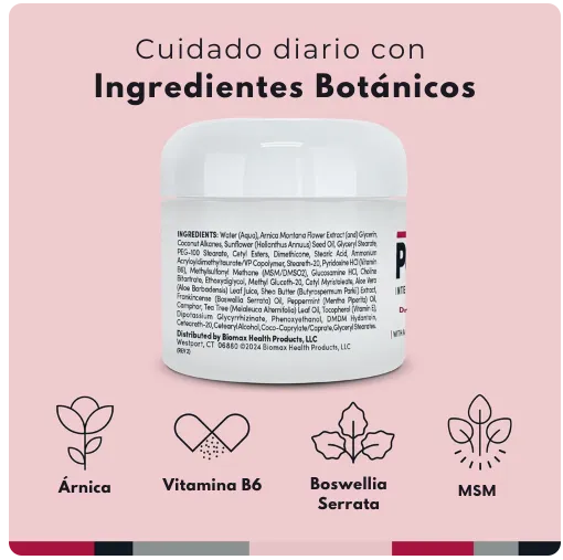 Therapy Cream está diseñado para aliviar el dolor y la incomodidad asociados con las afecciones articulares y óseas. Repleta de ingredientes naturales, esta crema de terapia funciona penetrando profundamente en la piel para atacar la inflamación y proporcionar alivio. Es particularmente eficaz para las personas que sufren de artritis, dolores musculares o dolor debido a la actividad física. Usar esta crema regularmente puede ayudar a mejorar la movilidad y mejorar la salud general de las articulaciones.